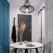 Elegancki i mały apartament typu studio z fantazyjną sypialnią i stylowym salonem oddzielone szklaną ścianą