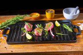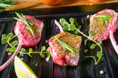 Surowe kotlety jagnięce sezonowane i marynowane zioła