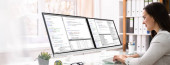 Zdjęcie "Korzystanie z arkusza kalkulacyjnego faktury korporacyjnej na monitorach komputerowych" może być wykorzystywane do celów osobistych i komercyjnych zgodnie z warunkami zakupionej licencji Royalty-free. Obraz jest dostępny do pobrania w jakości wysokiej rozdzielczości do 5760x3840.
