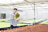Zdjęcie "Portret rolnika w koszuli w kratę i dżinsach siedzącego w pobliżu stosu gleby do sadzenia w szklarni." może być wykorzystywane do celów osobistych i komercyjnych zgodnie z warunkami zakupionej licencji Royalty-free. Obraz jest dostępny do pobrania w jakości wysokiej rozdzielczości do 5760x3840.