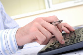 młody biznesmen, pracuje w biurze, w jego miejscu pracy.