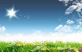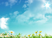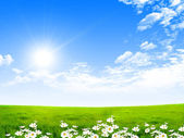 wykwintne krajobraz, Błękitne niebo, słońce i trawa zielona