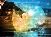 biznesmen współpracuje z działalności sieci wyświetlacz