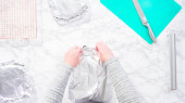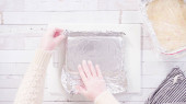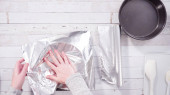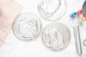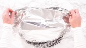 Krok po kroku. Leżeć płasko. Owijanie świeżo upieczonych warstw ciasta w czystą żywność wra