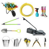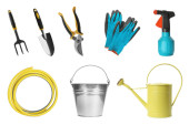 Zdjęcie "Zestaw z różnymi narzędziami ogrodniczymi na białym tle. Projekt banera" może być wykorzystywane do celów osobistych i komercyjnych zgodnie z warunkami zakupionej licencji Royalty-free. Obraz jest dostępny do pobrania w jakości wysokiej rozdzielczości do 5760x3840.