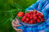 Zdjęcie "Rolnik w niebieskich ubraniach trzyma dojrzałe warzywa w rękach. Marchew, różowe rzodkiewki, cukinia, ogórek, cebula. Bez plastiku, bez odpadów, ekologia" może być wykorzystywane do celów osobistych i komercyjnych zgodnie z warunkami zakupionej licencji Royalty-free. Obraz jest dostępny do pobrania w jakości wysokiej rozdzielczości do 5760x3840.