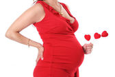 piękna, młoda dziewczyna w ciąży przytulanie miękkie wielkie serce. mama, matka, macierzyństwo, czeka na narodziny dziecka. Święto Świętego Walentego