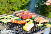 człowiek przygotowuje pyszne różne mięsa i warzyw na grilla
