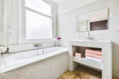 Zdjęcie "Wanna we współczesnym wnętrzu łazienki" może być wykorzystywane do celów osobistych i komercyjnych zgodnie z warunkami zakupionej licencji Royalty-free. Obraz jest dostępny do pobrania w jakości wysokiej rozdzielczości do 5760x3840.