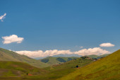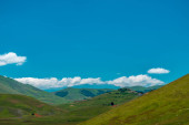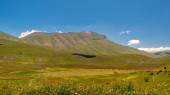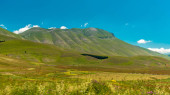 Kolory pól pobłażliwych pełne kwiatów w Castelluccio di Norcia