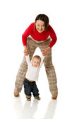 Szczęśliwa rodzina pozowanie razem biały na białym tle na