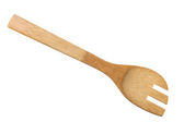 Widok górny: drewniana łyżka izolowana na białym tle.