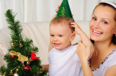 mały chłopiec i jego mama ma ze sobą spędzać czas zabawy.
