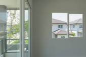 Szklana ramka okna wnętrze domu na białej ścianie