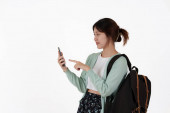 Zdjęcie "Piękna młoda kobieta ze stylowym skórzanym plecakiem i smartfonem na żółtym tle. Miejsce na tekst" może być wykorzystywane do celów osobistych i komercyjnych zgodnie z warunkami zakupionej licencji Royalty-free. Obraz jest dostępny do pobrania w jakości wysokiej rozdzielczości do 5760x3840.