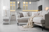Zdjęcie "Nowoczesny salon z parkietem i stylowe meble" może być wykorzystywane do celów osobistych i komercyjnych zgodnie z warunkami zakupionej licencji Royalty-free. Obraz jest dostępny do pobrania w jakości wysokiej rozdzielczości do 5760x3840.