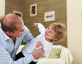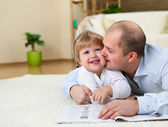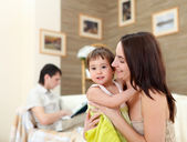 młody szczęśliwą rodzinę, zabawy z dzieckiem w salonie