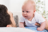 młody szczęśliwą rodzinę, zabawy z dzieckiem w salonie