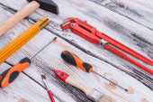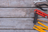 Zdjęcie "Widok z góry zestawu narzędzi na drewnianym tle." może być wykorzystywane do celów osobistych i komercyjnych zgodnie z warunkami zakupionej licencji Royalty-free. Obraz jest dostępny do pobrania w jakości wysokiej rozdzielczości do 5760x3840.