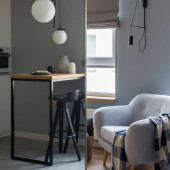 Salon w stylu eklektycznym z nowoczesnymi meblami i dekoracjami