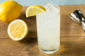 Boozy orzeźwiający Lemon Rum Collins z wodą sodową