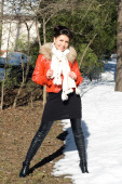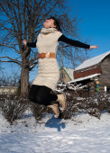 dziewczyna idąc w zimie pole