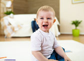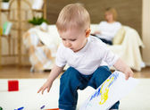 młody szczęśliwą rodzinę, zabawy z dzieckiem w salonie