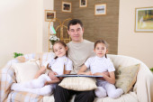 młody szczęśliwą rodzinę, zabawy z dzieckiem w salonie