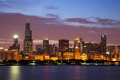 Chicago Skyline przy Epickim Zachodzie Słońca, Illinois, USA