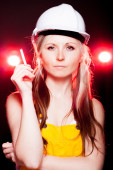 bardzo młoda kobieta w tshirt pomarańczowy sody pitnej