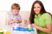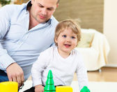 młody szczęśliwą rodzinę, zabawy z dzieckiem w salonie