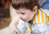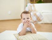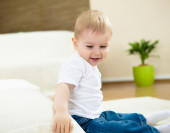 szczęśliwy uśmiechający się chłopiec, gry i zabawy w domu