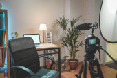 Miejsce pracy blogera, przygotowanie do kręcenia wideo z rozpakowywania gadżetów, brak ludzi