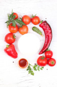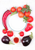 Zdrowego organicznych warzyw na drewniane tła. Rama