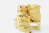 Zenit widok, urozmaicone suszone rośliny strączkowe, koloru i smaku, prezentowane w workach papierowych kraft. Zdrowa żywność dla wegetarian, a także dla wegan.