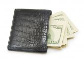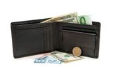 skórzany portfel z pieniędzmi izolowanymi na białym tle