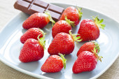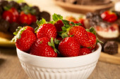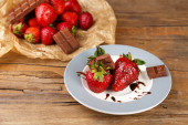 czerwony dojrzałe truskawki w czekoladzie na drewnianym stole
