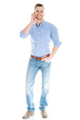 dwóch młodych mężczyzn rozmawia przez telefon komórkowy