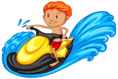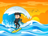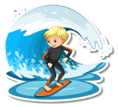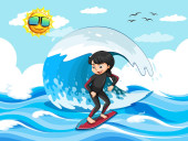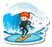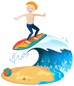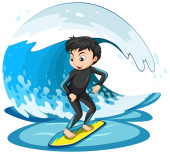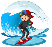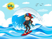 Chłopiec surfujący na fali wodnej odizolowanej ilustracji