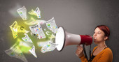 Zdjęcie "Dziewczyna krzyczy do głośnika, a gazety wylecą." może być wykorzystywane do celów osobistych i komercyjnych zgodnie z warunkami zakupionej licencji Royalty-free. Obraz jest dostępny do pobrania w jakości wysokiej rozdzielczości do 5760x3840.