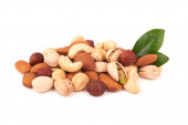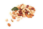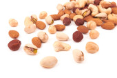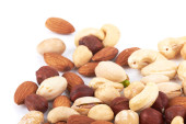 Masa mieszanych orzechów izolowanych na białym tle