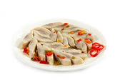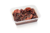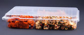 kawałki mięsa wieprzowe marynowane w pudełku z tworzywa sztucznego
