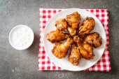 skrzydełka kurczaka w stylu bufalo z sosem grillowym i surówką coleslaw na boku