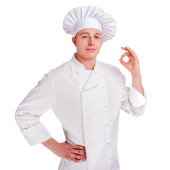 kobieta kucharz daje doskonałe gest ręką. młody piękny f