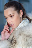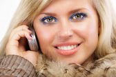 uśmiechający się włos w biały płaszcz rozmowy na telefon