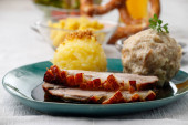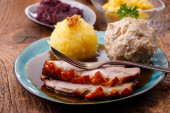 Zdjęcie "pieczona wieprzowina bawarska z pierogami" może być wykorzystywane do celów osobistych i komercyjnych zgodnie z warunkami zakupionej licencji Royalty-free. Obraz jest dostępny do pobrania w jakości wysokiej rozdzielczości do 5760x3840.