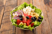 sałatka warzywna z ogórkiem, pomidorem, serem i oliwką