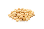 Orzechy makadamia izolowane na białym tle. Widok z góry.