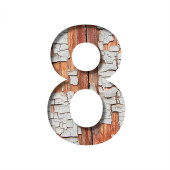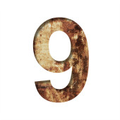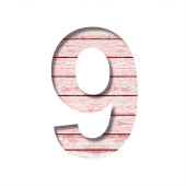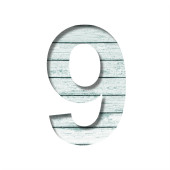 Płyta ścienna Plank. Cyfra 9, 9 wycięte z papieru na starej ścianie deski z wyblakłą farbą. Zestaw czcionek dekoracyjnych na drewnie.