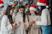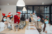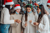Wieloetniczni młodzi ludzie świętują Sylwestra na imprezie